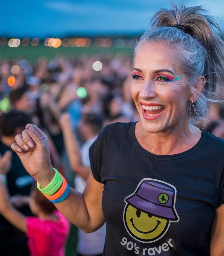 Shop DJ T-Shirts and rave fashion clothing inspired by house, techno, and 90s dance culture. From witty slogans to old skool vinyl and acid house t-shirts, our best-selling designs celebrate the energy of clubs, festivals, and the underground rave scene.
