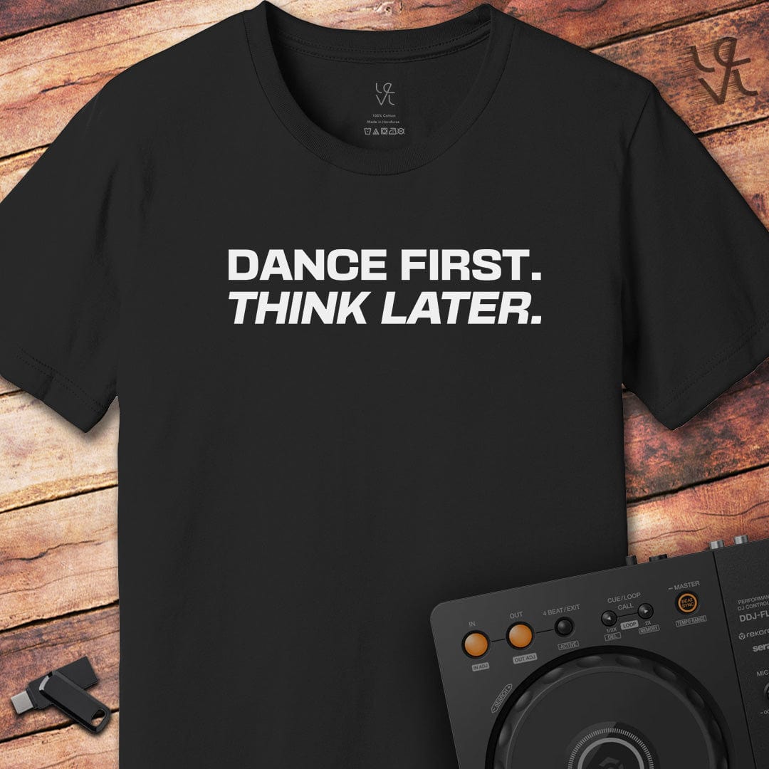 The Dance First. Think Later. tee is a bold slogan design that captures the true spirit of DJ culture. It’s about living in the moment, letting the music take control, and leaving everything else behind. Simple yet powerful, this shirt is perfect for DJs who believe the dancefloor comes before everything else.