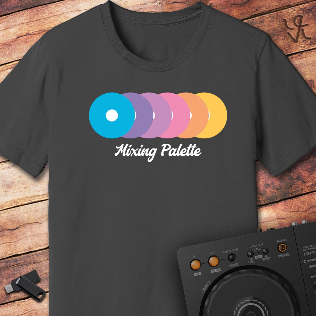 Sound is your medium, and this tee is your canvas. Featuring a bold graphic of coloured vinyl discs arranged like an artist’s paint palette, this “Mixing Palette” design is made for DJs who treat every set like a masterpiece in motion.