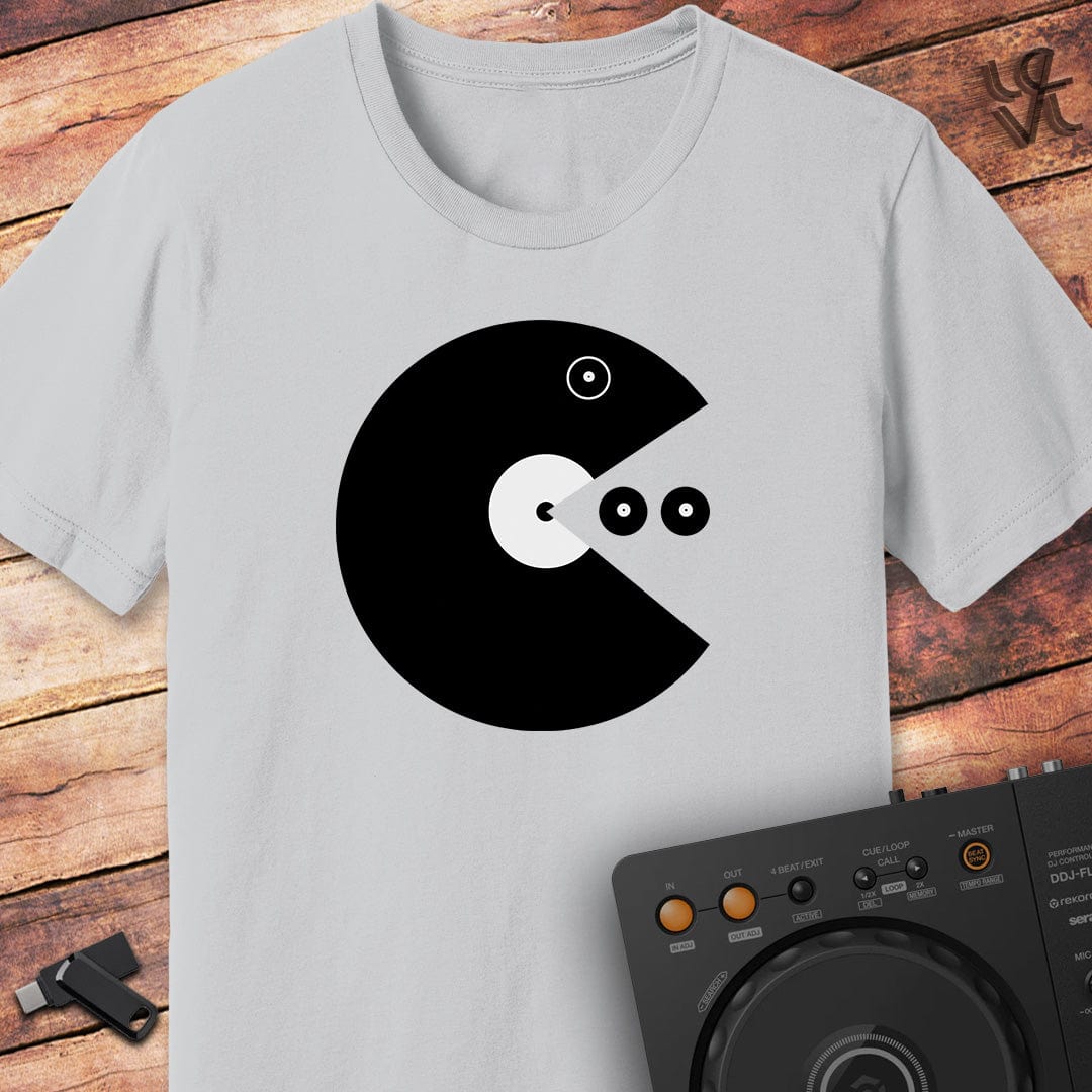 For those who love a classic arcade vibe with a modern twist, the "WAKKA WAKKA" tee is a must-have. Featuring a playful Pac-Man design, this shirt showcases the iconic character on a mission to devour vinyl records instead of pellets. Perfect for DJs, music lovers, and retro game enthusiasts alike, this shirt brings together two worlds that never go out of style.