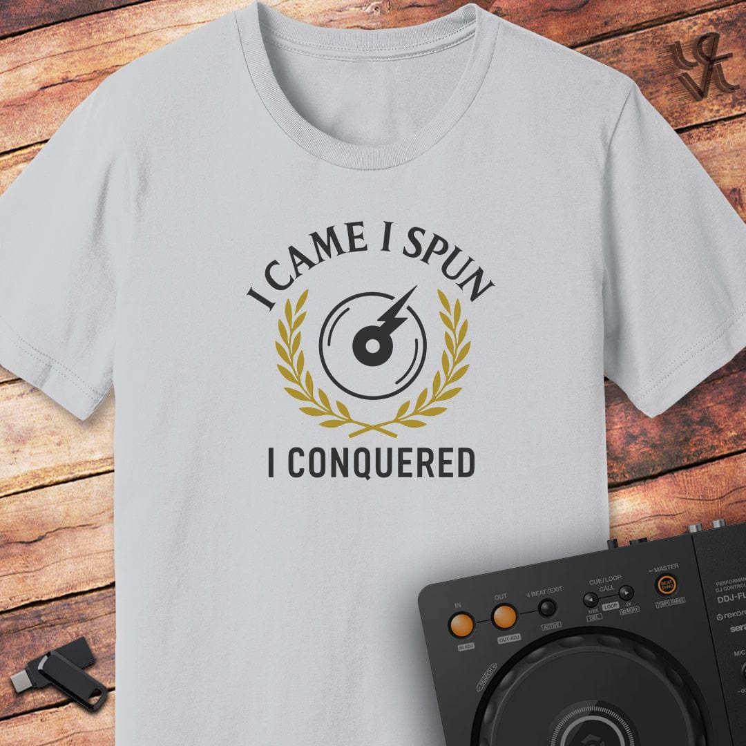 For those who approach life like a champion, the "I Came I Saw I Conquered" tee is the perfect way to showcase your bold attitude and unstoppable drive. With a design featuring a vinyl disc surrounded by a lightning bolt and laurel leaf, this shirt is a tribute to those who rule the decks, dominate the scene, and make their mark wherever they go. Whether you're a DJ, producer, or anyone who lives life to the fullest, this tee is for you.